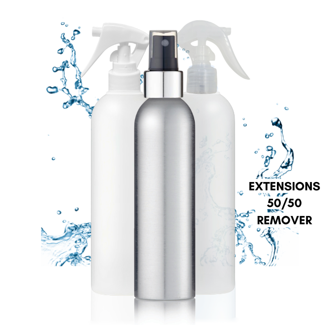Description: The 50/50 Remover is a highly effective solution formulated with a precise blend of isopropyl alcohol and acetone. This dual-action remover is designed to tackle various types of hair extension bonds, ensuring efficient and thorough removal. It is crucial to follow the guidance of your extension supplier and always test for product compatibility before use.
